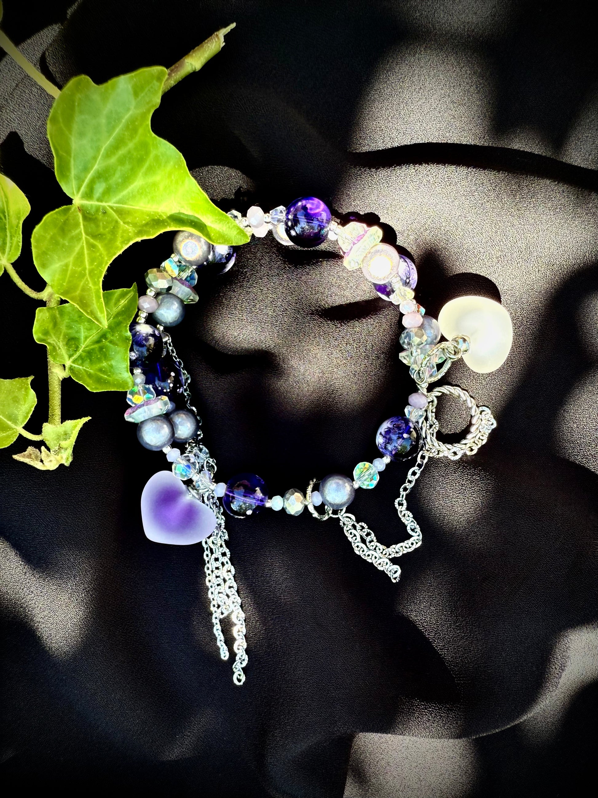 From Him Bracelet is a story captured in beads — inky purples, glints of crystal, and soft frosted hearts that feel like tiny secrets on your wrist. An effortless way to add character and emotion to your everyday style.